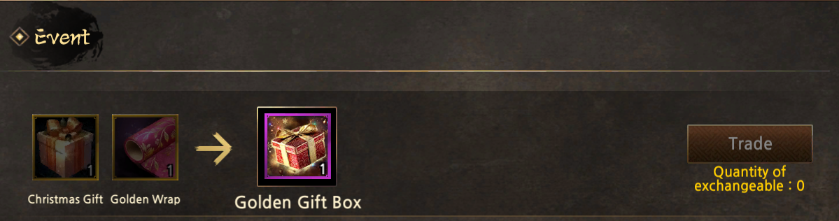 ㆍ You can exchange Christmas Gift + Golden Wrap (purchased in the shop) for a Golden Gift Box through the Exchange NPC.