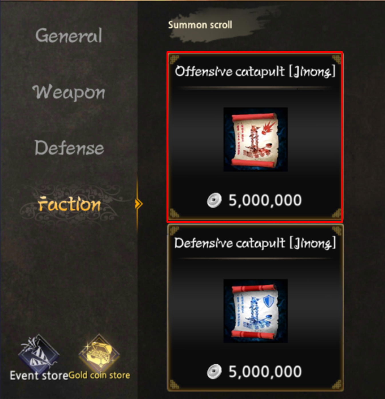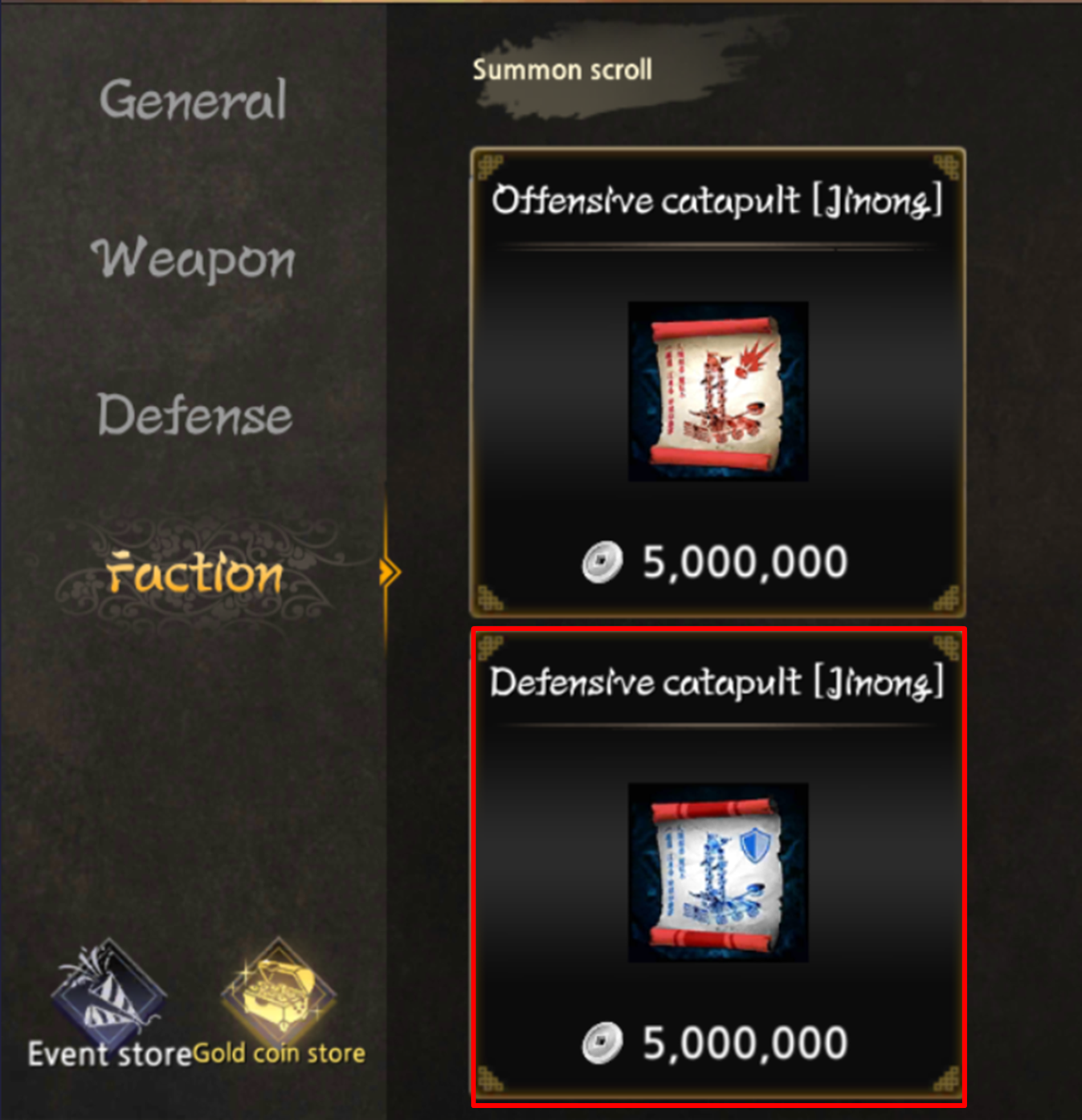 - Defensive catapult can be purchased through the silver store and can be purchased and used by 'Faction Leader' and 'Vice Faction Leader'.
