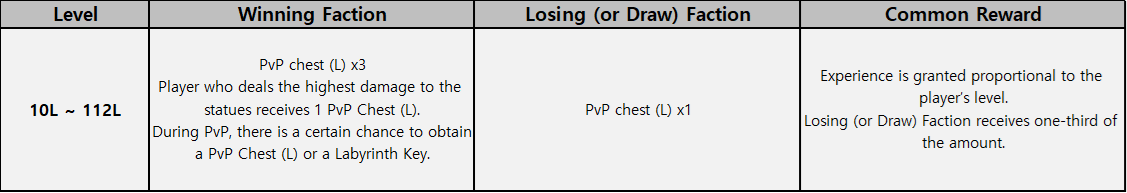 - The character who deals the highest total damage to the Statue will receive a PvP chest (L). (Up to 3 can be obtained.)