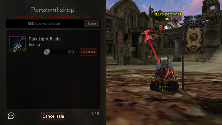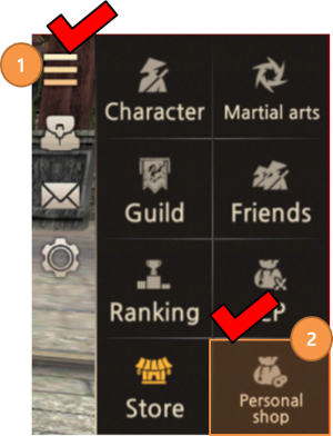 - You can open a personal shop through the menu in the upper right corner of the screen.