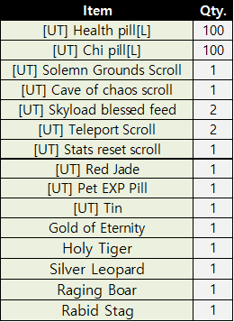 ※ All Spirit Essences obtained from the chest are acquired as UT (Bound) items.