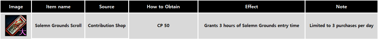 ※ Consumes 2 Teleport Scrolls when moving to the Solemn Grounds.