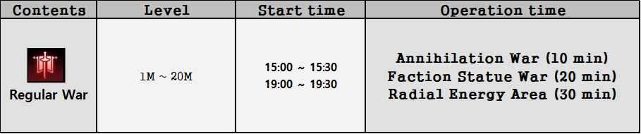 - 100 people can participate in each level section and faction in this PVP content that takes place between factions.