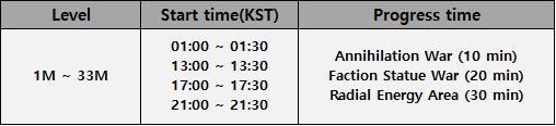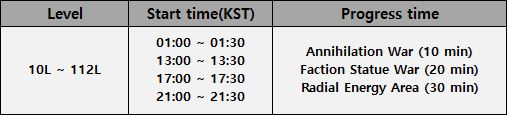 :: One of the three battle modes Annihilation War / Faction Statue War / Radial Energy Area will be randomly selected.