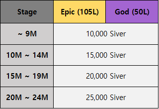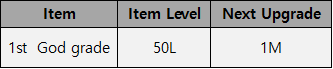 - God grade items starting at 50L can next be upgraded at 1M.
