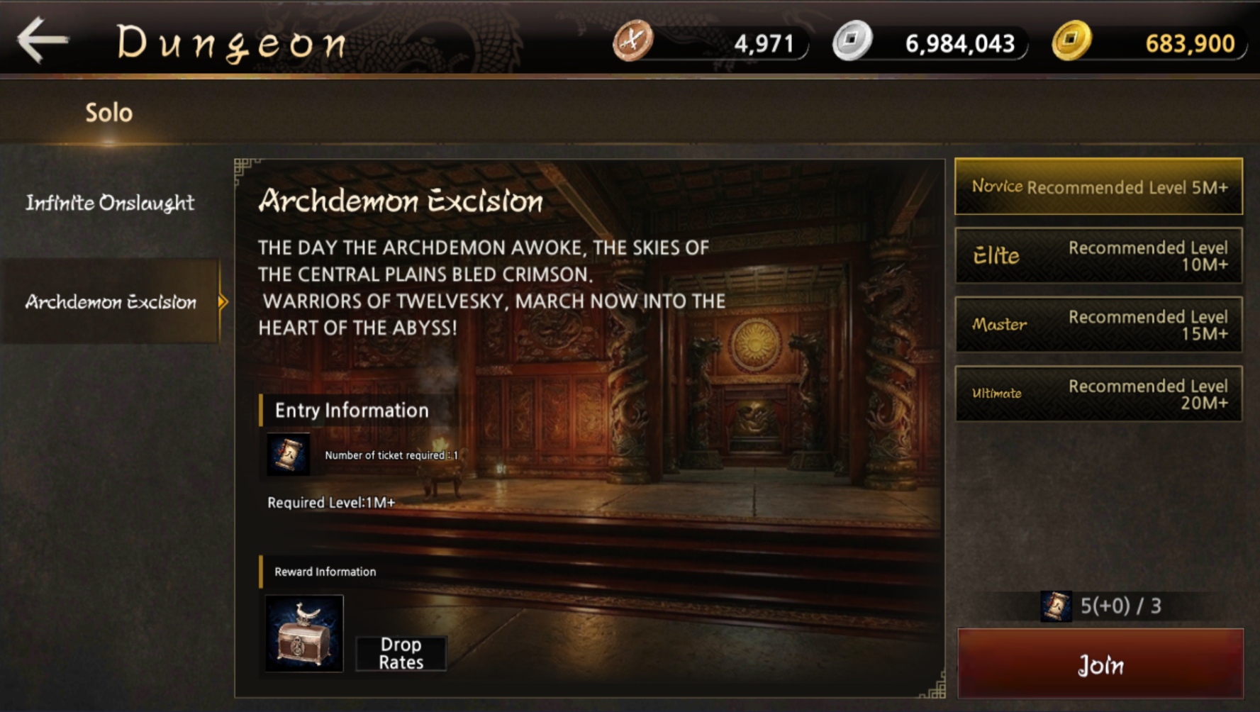 Archdemon Excision: Purchase 1 ticket per attempt, up to 2 times daily