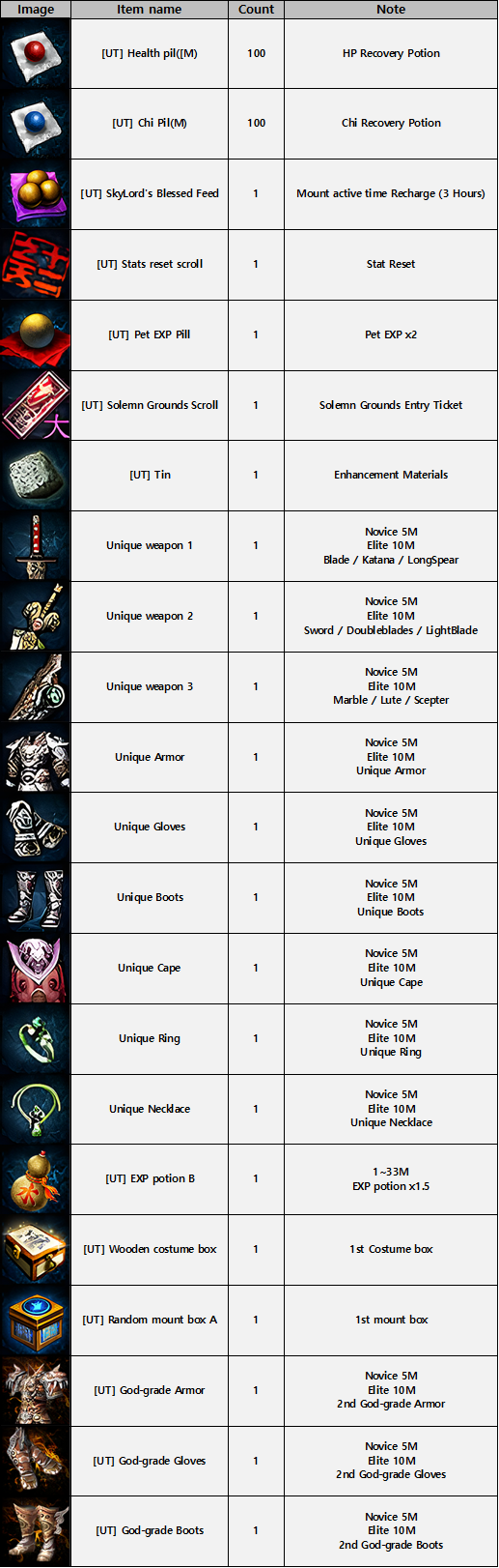 ※ Novice Excision Chest: Grants 3–5 random items